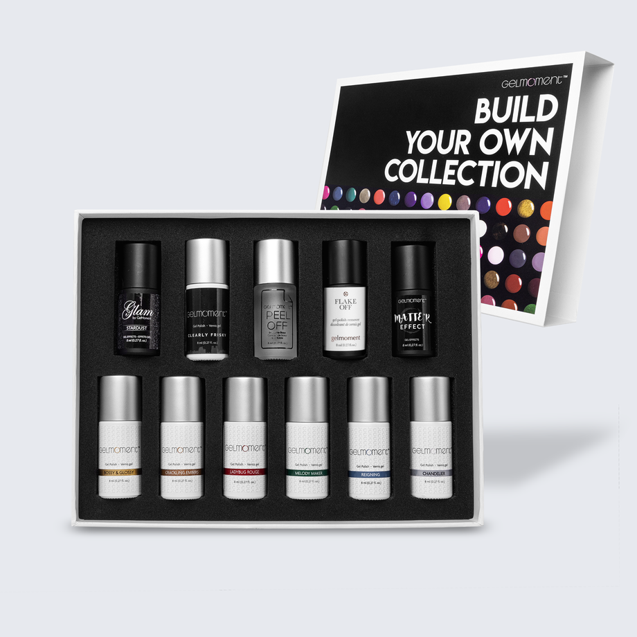 Create your own collection of 11 (10 plus 1 FREE) GelMoment gel polishes.